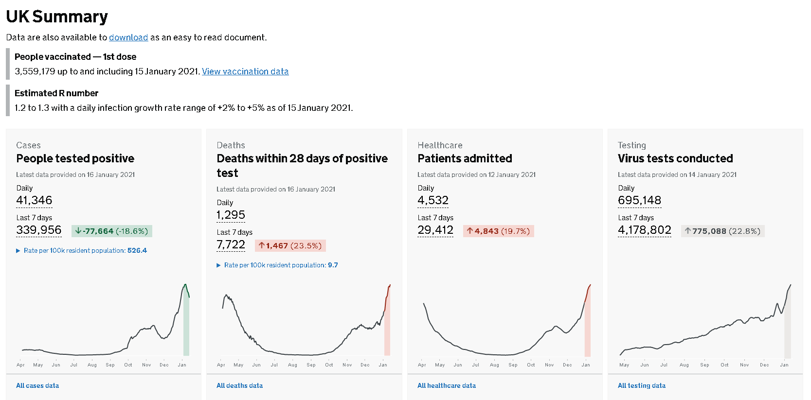 伦敦当地时间1月16日,英国卫生和社会保障部公布的最新数据显示,过去24小时英国新增新冠肺炎确诊病例41346例,累计确诊3357361例;新增死亡1295例,累计88590例。(总台记者 杨洪)