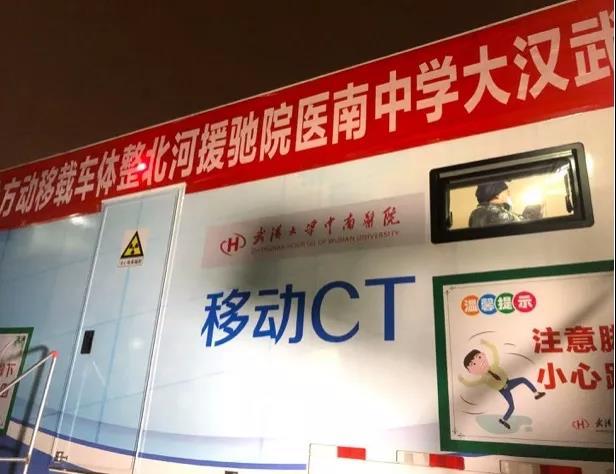 ↑武汉大学中南医院5G车载移动CT,可用于全身CT平扫和增强检查,能快速完成肺部CT筛查,平均每天可体检筛查200至300人次。
