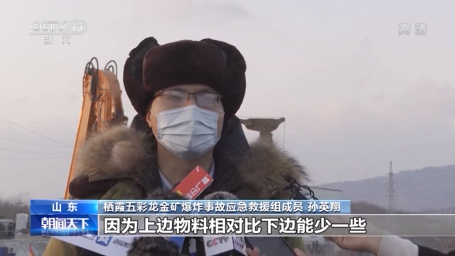 栖霞五彩龙金矿爆炸事故应急救援组成员 孙英翔:因为上边物料相对比下边能少一些,而且现在这个区域属于危料堆积区,清理难度会相对大一些。