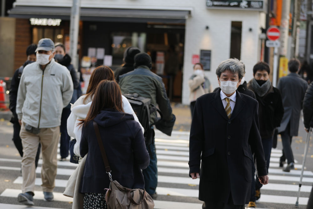 1月7日,在日本东京,人们戴口罩出行。(新华社记者杜潇逸摄)