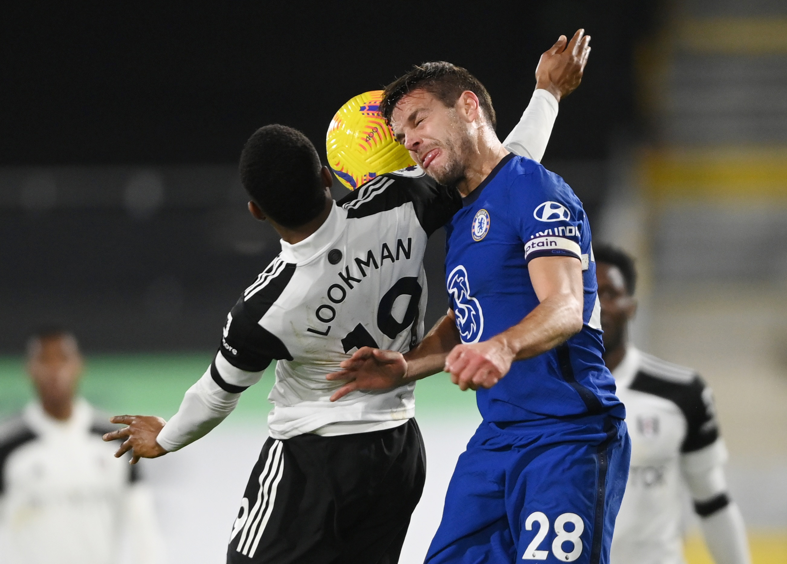 1月16日,切尔西队球员阿斯皮利奎塔(右)和富勒姆队球员卢克曼争顶。新华社/路透