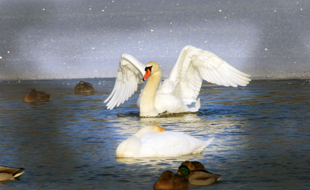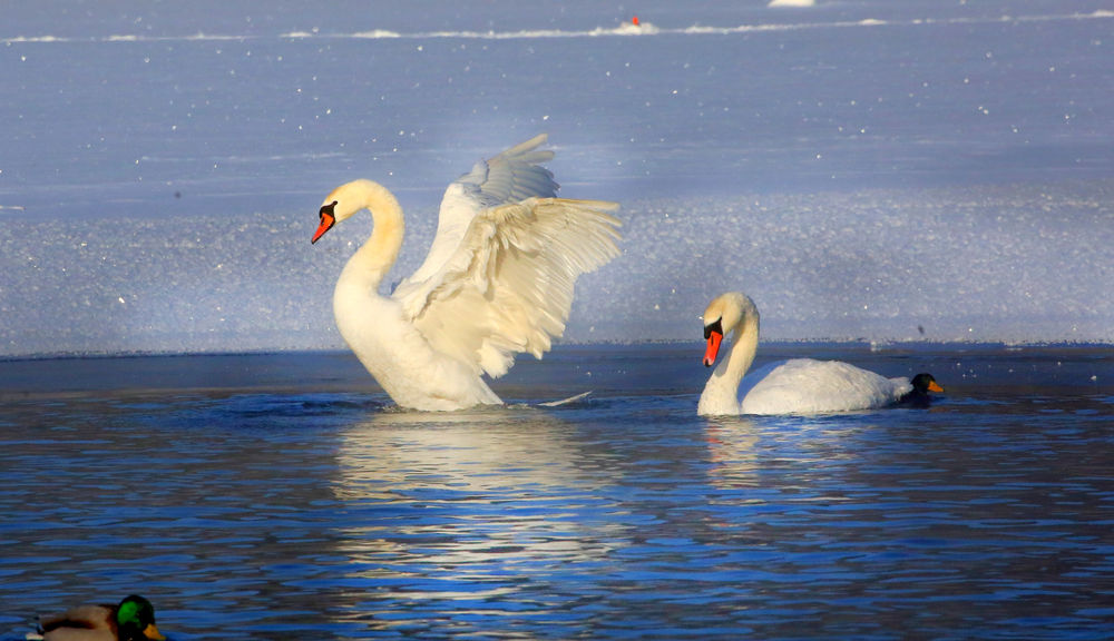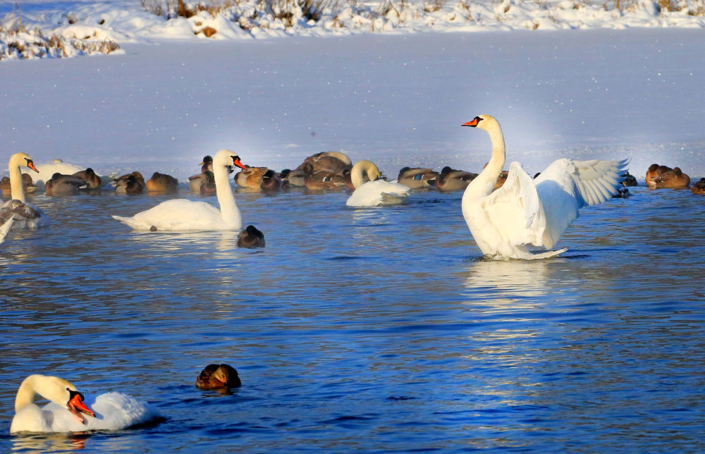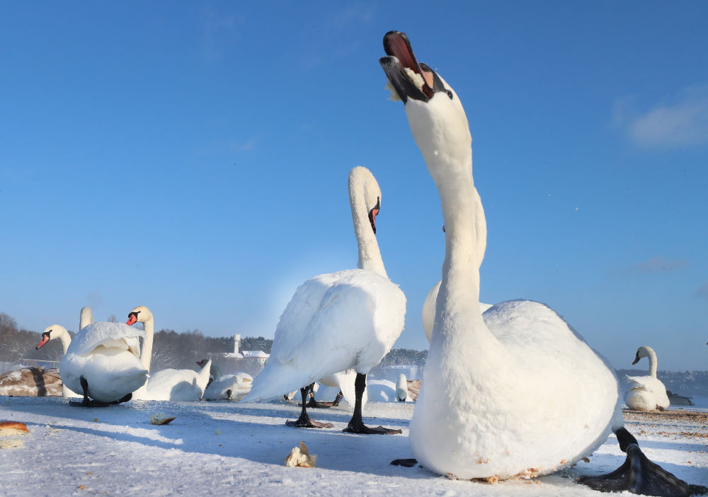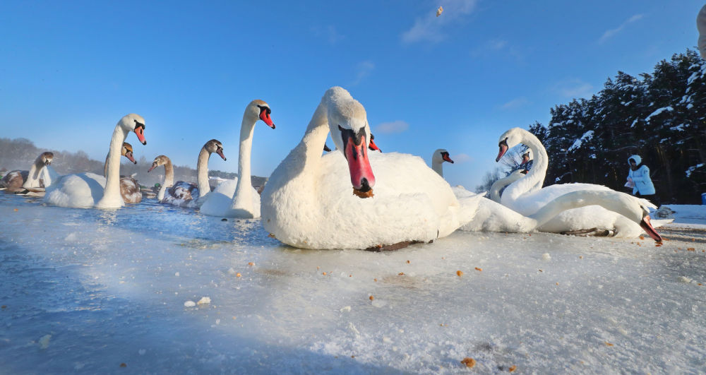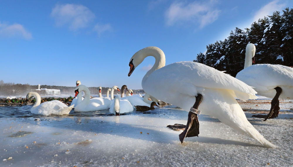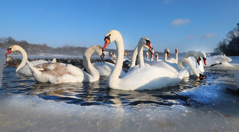 虽然此时白俄罗斯已是寒冬,但首都明斯克的一处不冻湖仍吸引来一些天鹅到此越冬。