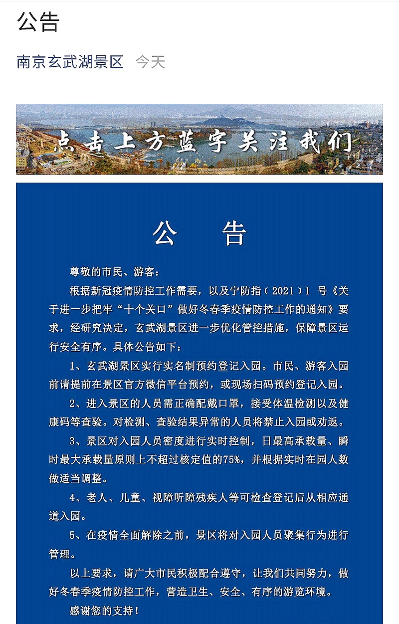 江苏多个著名景点为加强疫情防控,公布了最新防疫措施:
