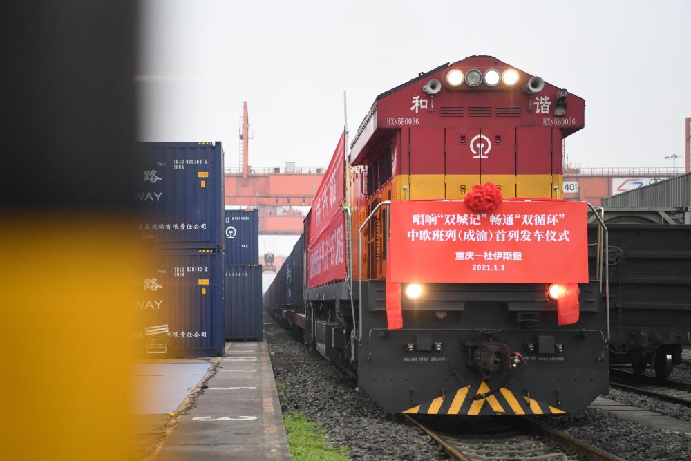 2021年1月1日,中欧班列(成渝)号首列班车在重庆团结村站等待发车。(新华社记者唐奕摄)