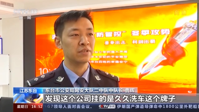 东台市公安局网安大队二中队中队长 曹辉:当我们到达现场进行摸排的时候,发现这个公司挂的是久久洗车这个牌子。然后从信用卡套现到洗车公司完全不相干,但是我们经过实地的走访调查,走访物业,经过长时间摸排,发现这个公司其实是挂羊头卖狗肉,一直在从事信用卡套现这样的业务。