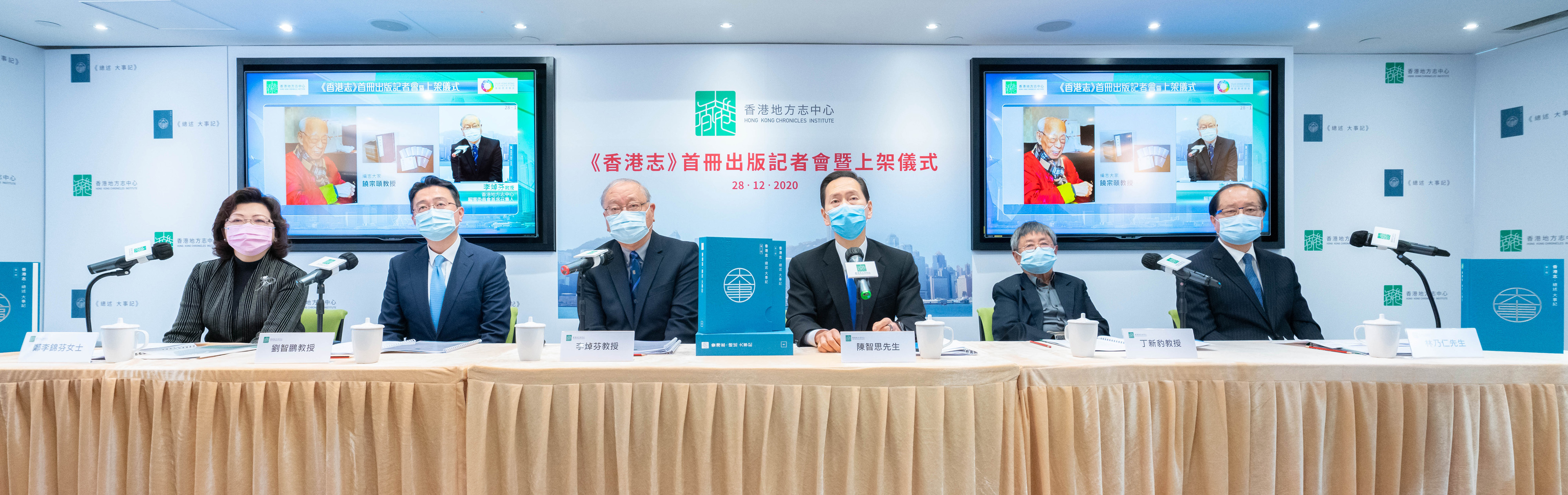 香港地方志中心举行《香港志》首册出版记者会暨上架仪式(2020年12月28日摄)。 受访者提供