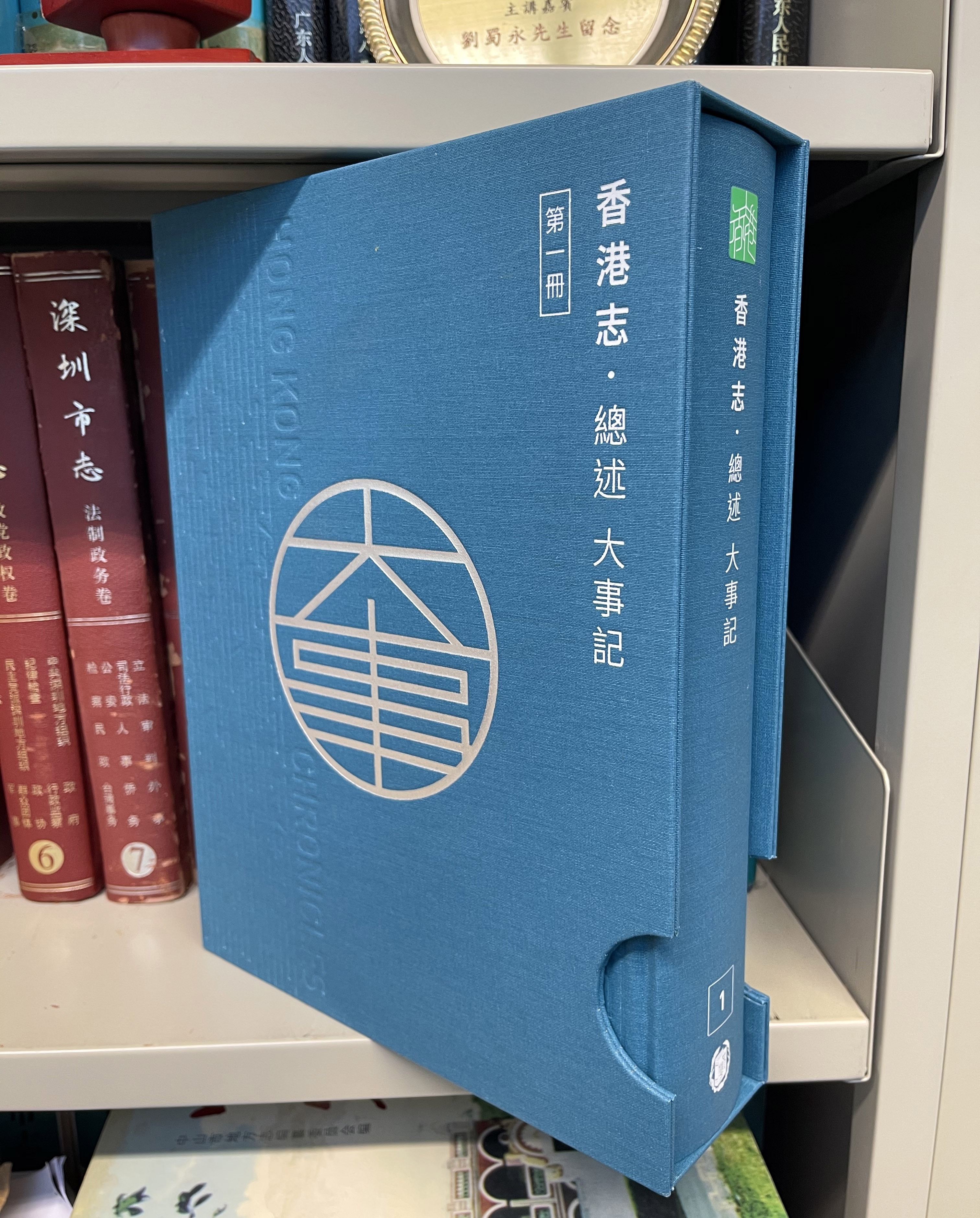 这本蓝色封面、774页的《香港志》首册《总述·大事记》由香港中华书局出版。它记录了从公元前5000年先民活动到香港回归20周年的7000多年间,香港历史的变迁和6000多件大事。