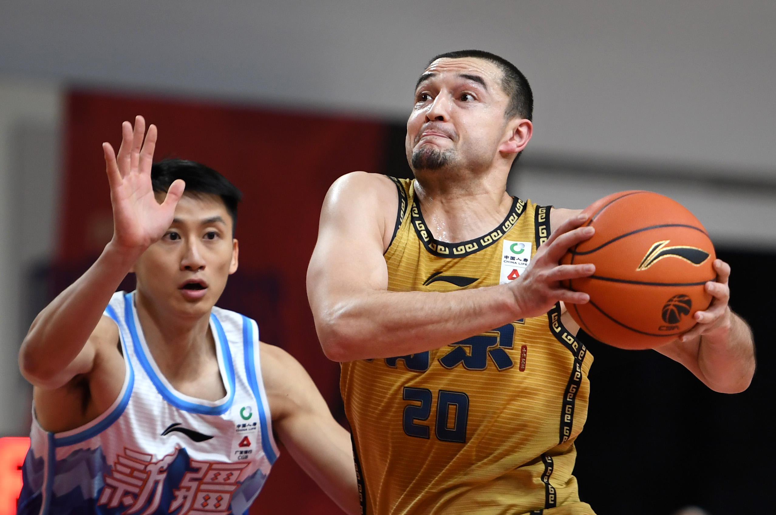 1月17日,同曦队球员西热力江(右)持球进攻。新华社记者李紫恒摄