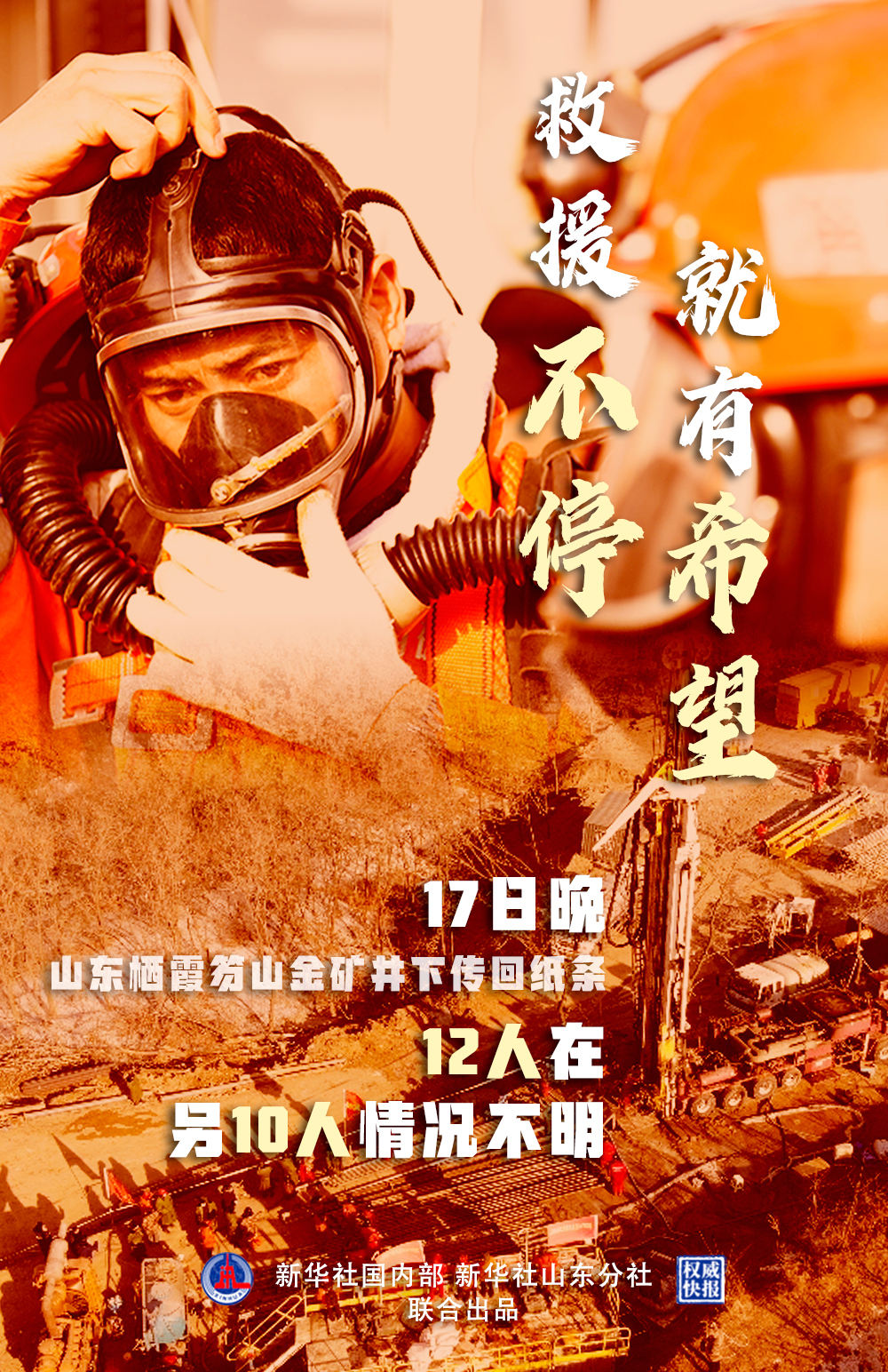 17日晚,山东栖霞笏山金矿爆炸事故现场