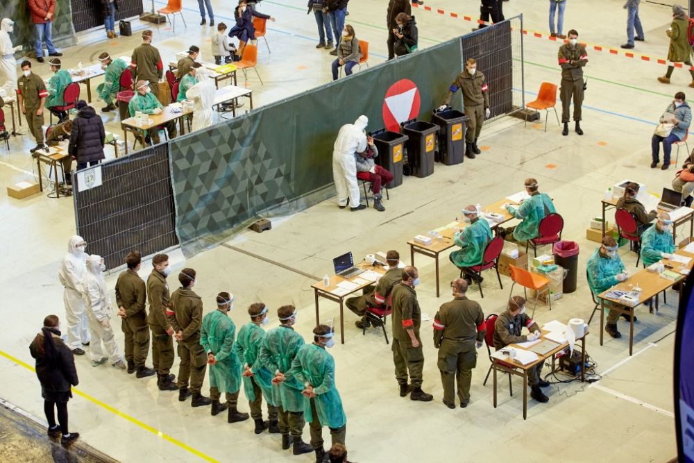 2020年12月4日,人们在奥地利首都维也纳体育馆内接受新冠病毒检测。(新华社发,乔治斯·施耐德摄)