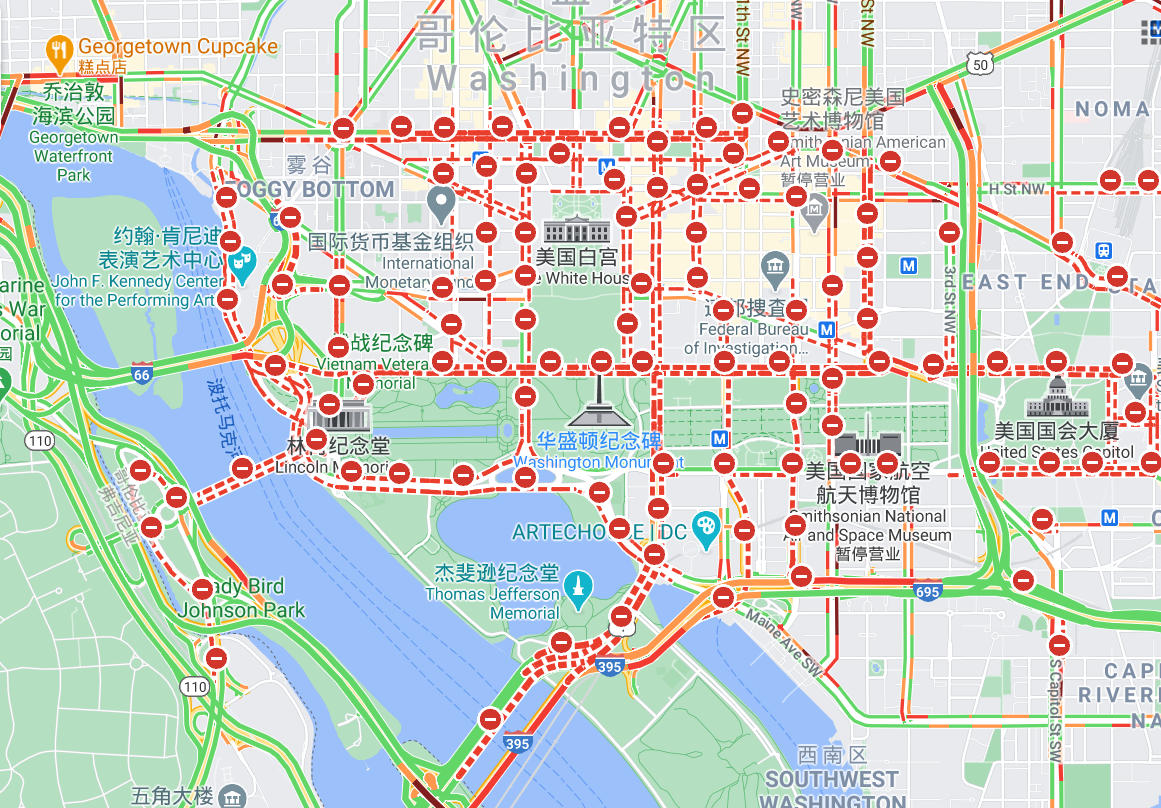 △谷歌地图显示的华盛顿市区限行路况