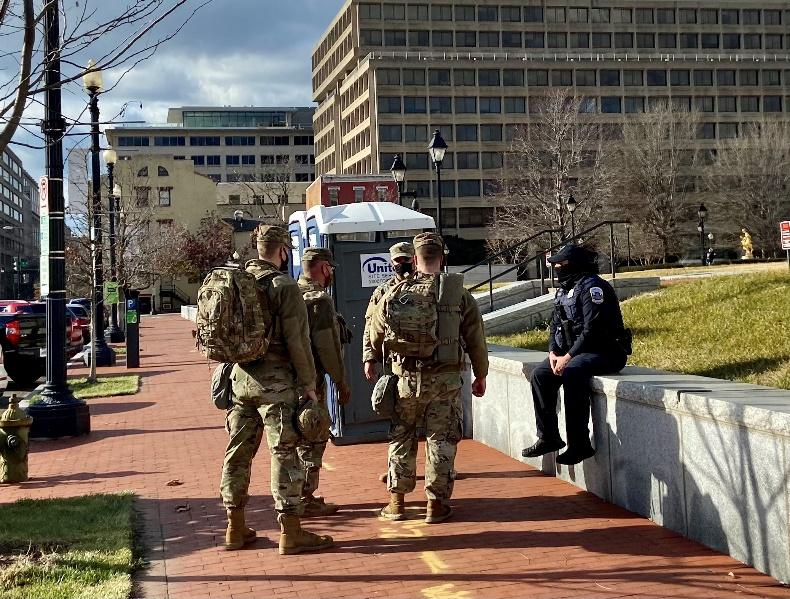 美国新总统就职典礼进入倒计时,首都华盛顿的安保也不断升级。从全美各地调集的国民警卫队持续进入华盛顿,美国在自己国家首都部署的兵力将达到驻韩美军的规模。整个城市的交通和市民生活受到很大影响,特别是局部进入市区的道路几乎完全中断。