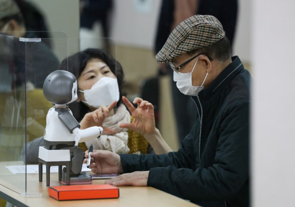 2020年11月16日,首尔市为老年人提供无接触式数码技能教育。(新华社记者王婧嫱摄)