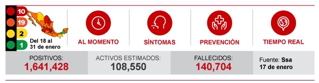 据墨西哥卫生部消息,截至当地时间1月17日晚上7时,墨西哥全国累计确诊1641428新冠肺炎病例,较前一天新增了11170例确诊病例。墨西哥全国确诊死亡病例较前一天新增463例,总数已经上升到140704例。(总台记者 盛嘉迪 吕兴林)