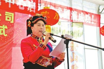 陈望慧在四川金山玫瑰科技有限公司产业化运营中心启动仪式上发言。受访者供图