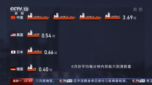 2020年,从二季度开始,大多数港口的船次明显增多,跟一季度比,内贸航次总量上涨了12%。再换个角度看,2020年6月份,在中国,平均每分钟有3.69艘内贸船只到达港口,超过了大部分经济体。