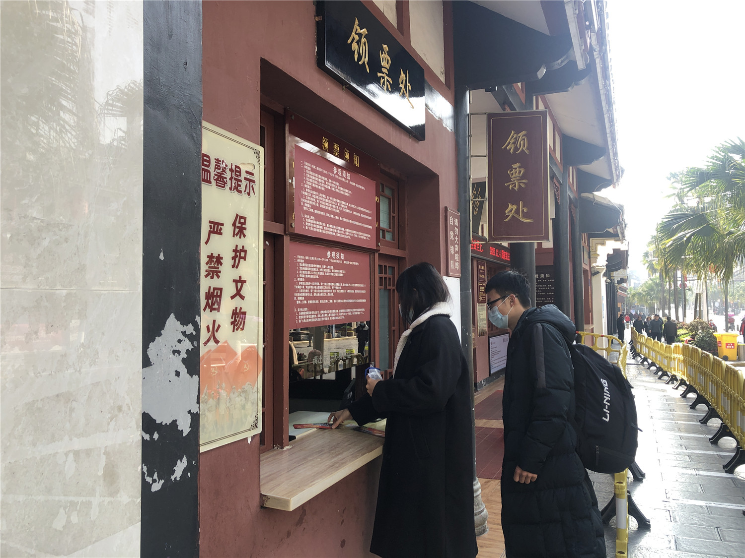 2008年,遵义会议会址向公众免费开放,凭票参观。这是游客在领票处凭身份证领取参观门票(2021年1月12日摄)。新华社记者 李惊亚 摄