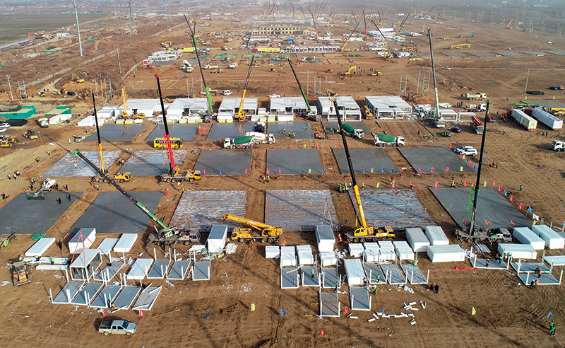 1月15日,工人在石家庄黄庄公寓隔离场所项目工地施工 杨世尧摄/本刊
