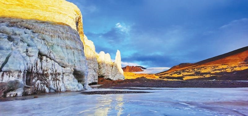 这是1月15日拍摄的普若岗日冰川一景。冬日里,在海拔高达6800米的普若岗日冰川,洁白巨冰覆盖在山体上,晶莹剔透,景色壮美。位于西藏那曲市双湖县的普若岗日冰川是世界第三大冰川。 新华社记者 沈虹冰 摄