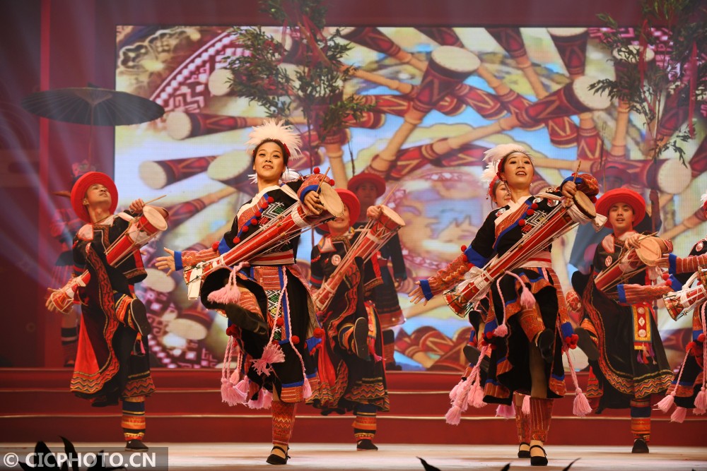 ↑“粤传粤精彩——广东非遗展演展播系列活动”中的瑶族长鼓舞表演《瑶族耍歌堂》。CICPHOTO/许建梅 摄