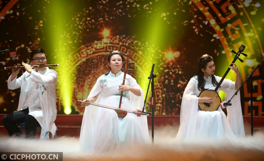 ↑“粤传粤精彩——广东非遗展演展播系列活动”中的广东音乐表演《粤韵飞扬》。CICPHOTO/许建梅 摄