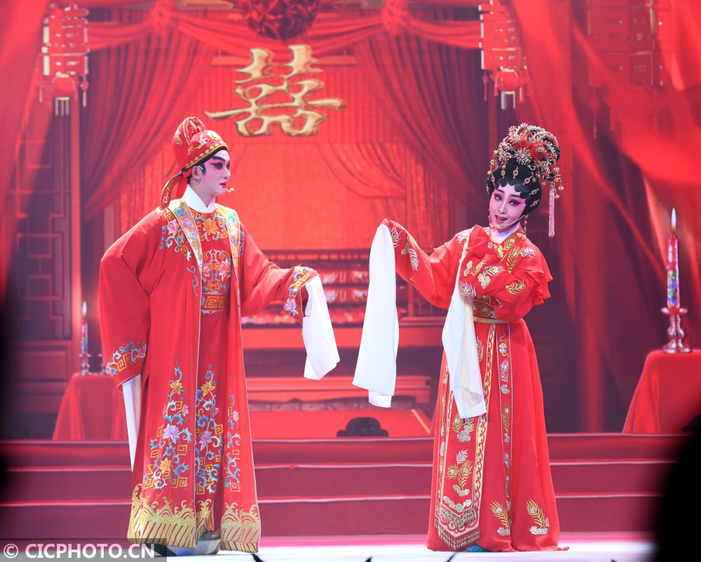 ↑“粤传粤精彩——广东非遗展演展播系列活动”上的粤剧表演《花好月圆》。CICPHOTO/许建梅 摄