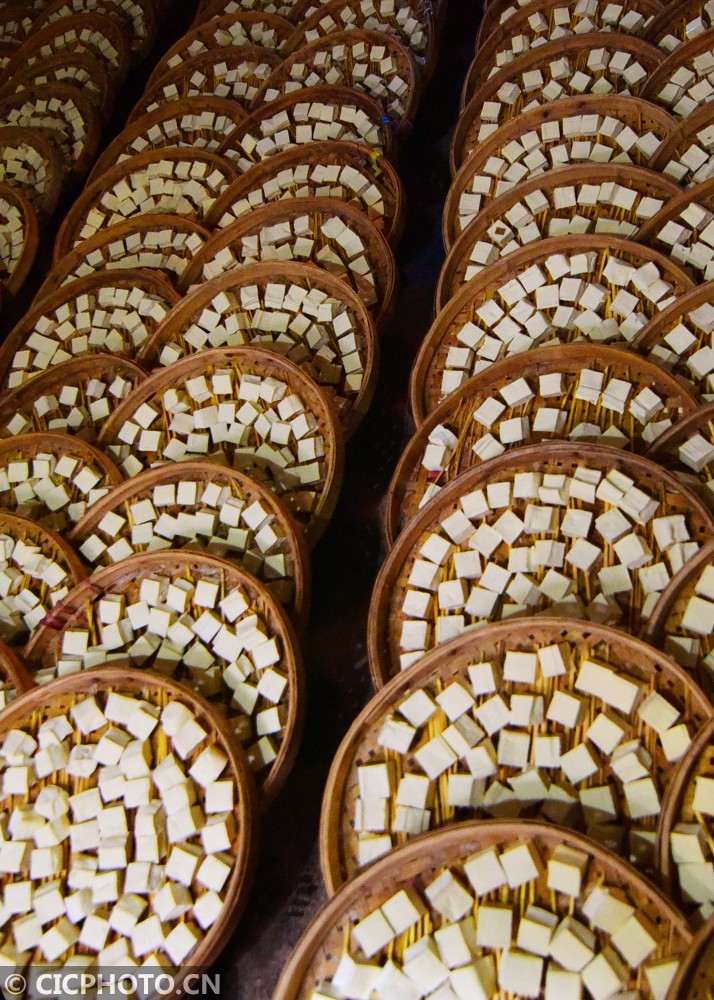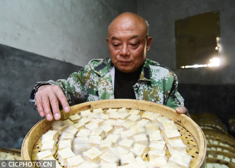 ↑2021年1月17日在湖南省郴州市嘉禾县晋屏镇邓家村拍摄的加工制作好的霉豆腐。CICPHOTO/黄春涛 摄
