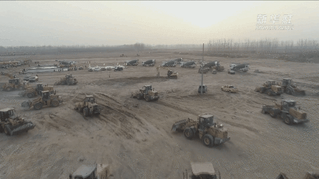 ▲1月14日石家庄市集中隔离点建设施工现场的挖掘机。图片来源:新华社
