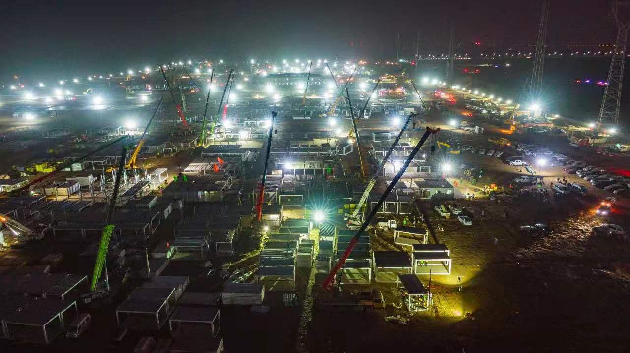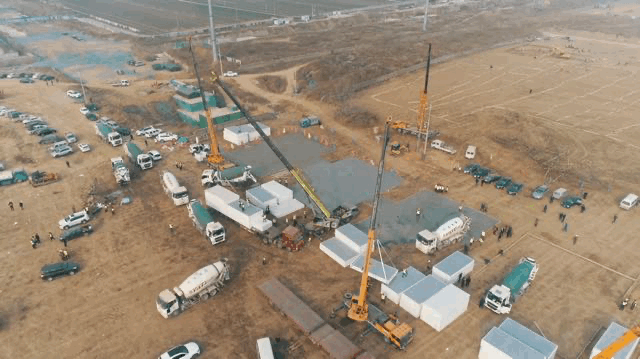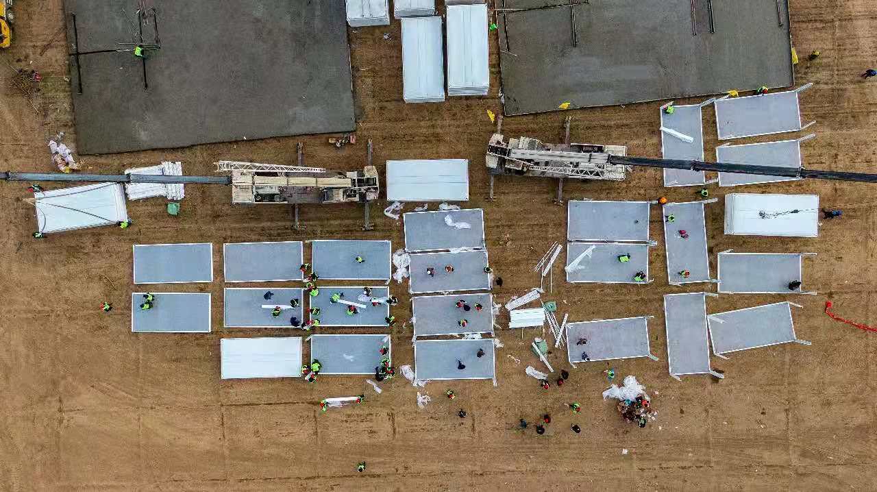 1月15日上午10点,黄庄公寓隔离场所仅用51个小时就完成了电源建设任务并成功送电。3000多名工人连夜施工完成基建部分,当天拼装房屋超过300套。
