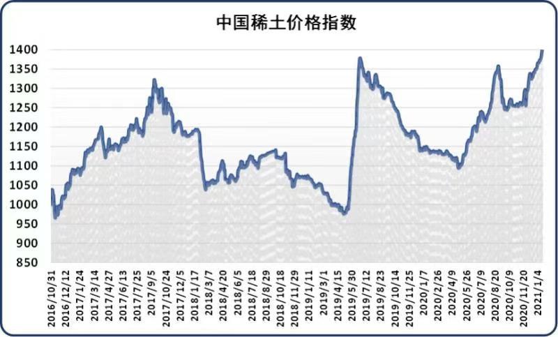 新华财经北京1月18日电(刘星麟)18日,中国稀土价格指数报1413.13点,较前一工作日上涨15.69点,涨幅为1.12%。主流产品报价偏强,上游厂家出货意愿低,现货供应偏紧,下游企业考虑为春节假期备货,询盘活跃度提高,实际成交量增加。