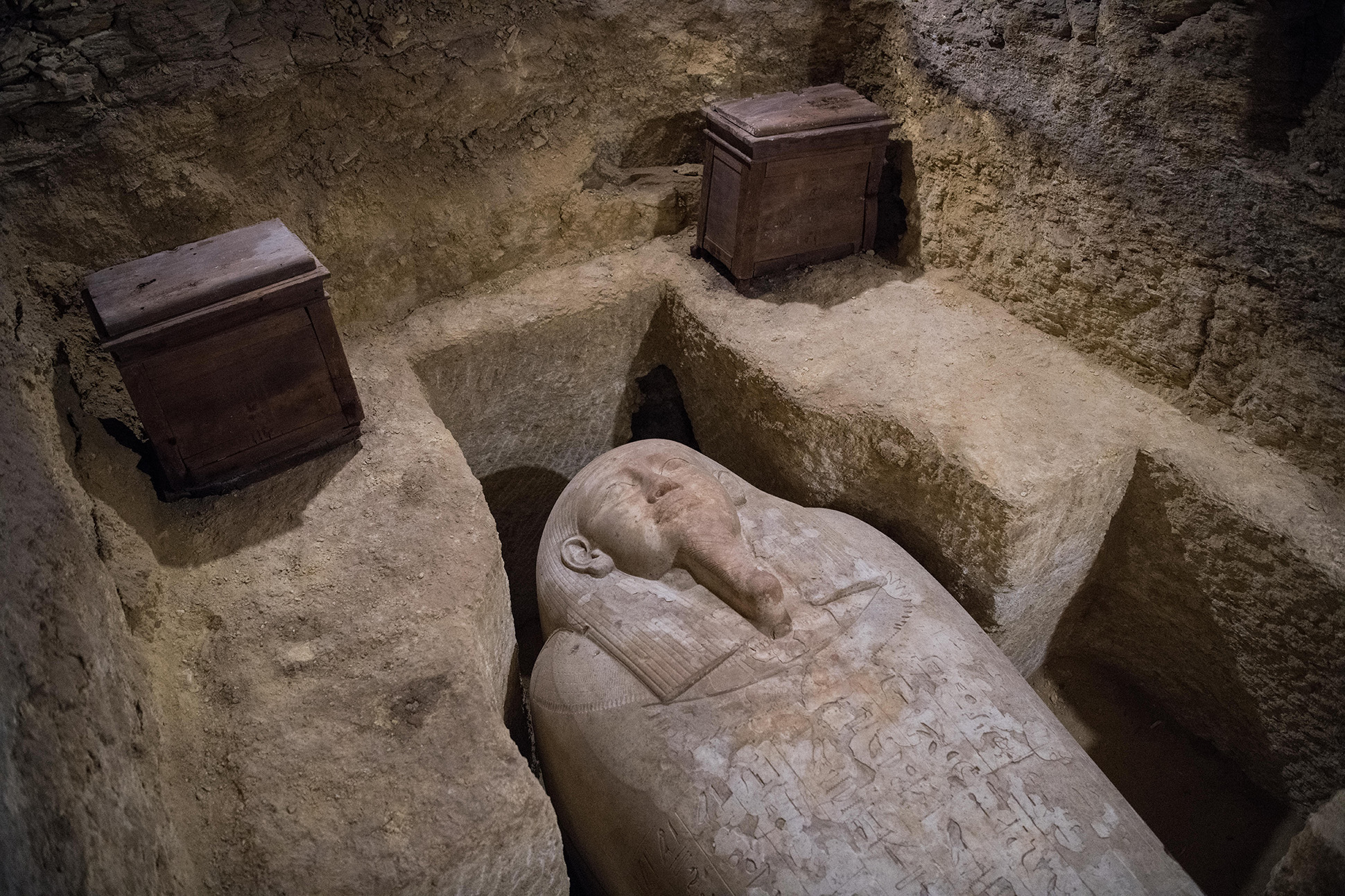 ▲这是2020年1月30日在埃及明亚省一座墓葬内拍摄的石棺。当日,埃及旅游和文物部长哈立德·阿纳尼在埃及明亚省一考古发掘现场宣布,考古人员在此发现16座距今约2600年的墓葬,以及约20个石棺和数千件陪葬品。