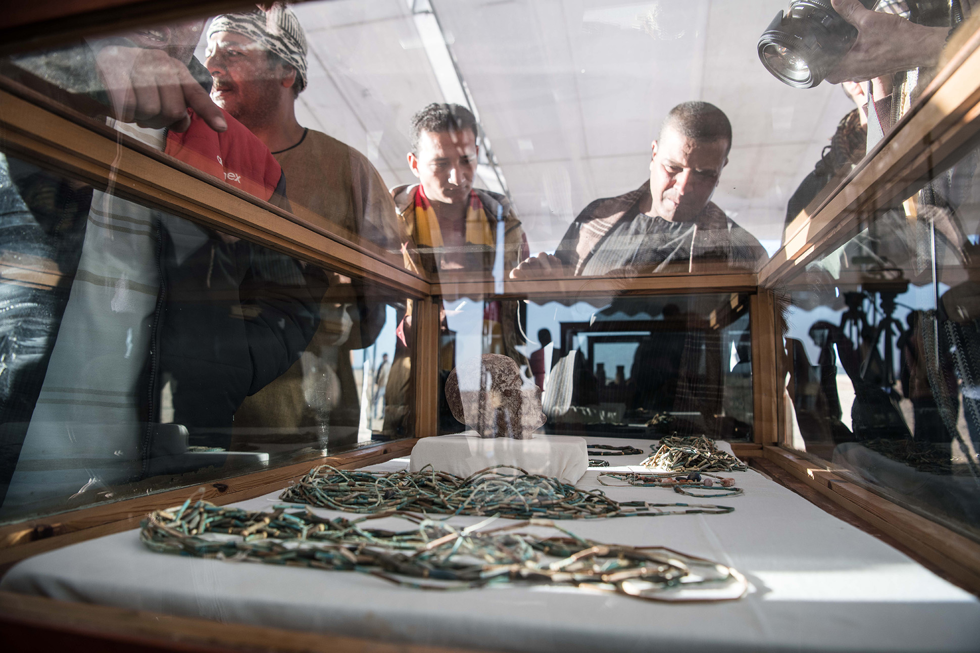 ▲2020年1月30日,埃及明亚省,人们观看发掘出的文物。