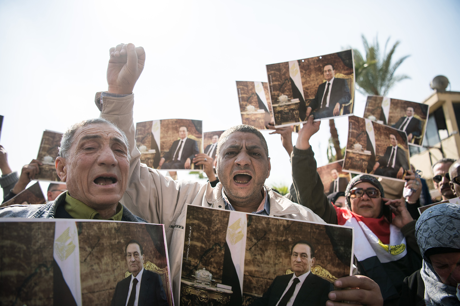 ▲2020年2月26日,埃及首都开罗,埃及前总统穆巴拉克的支持者手举他的照片。埃及前总统穆巴拉克的葬礼26日在埃及首都开罗举行。