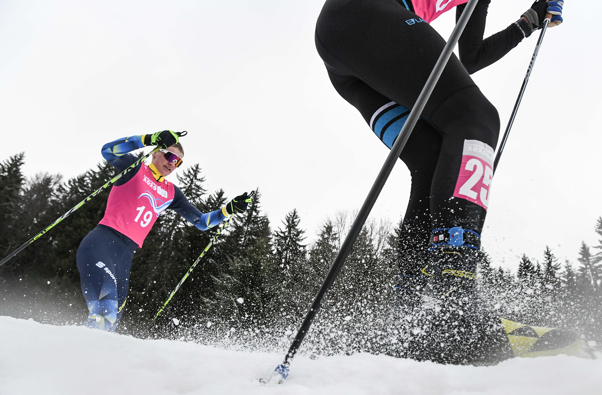 ▲2020年1月18日,乌克兰选手Oleksandr Lisohor(左)在越野滑雪男子自由式比赛中。