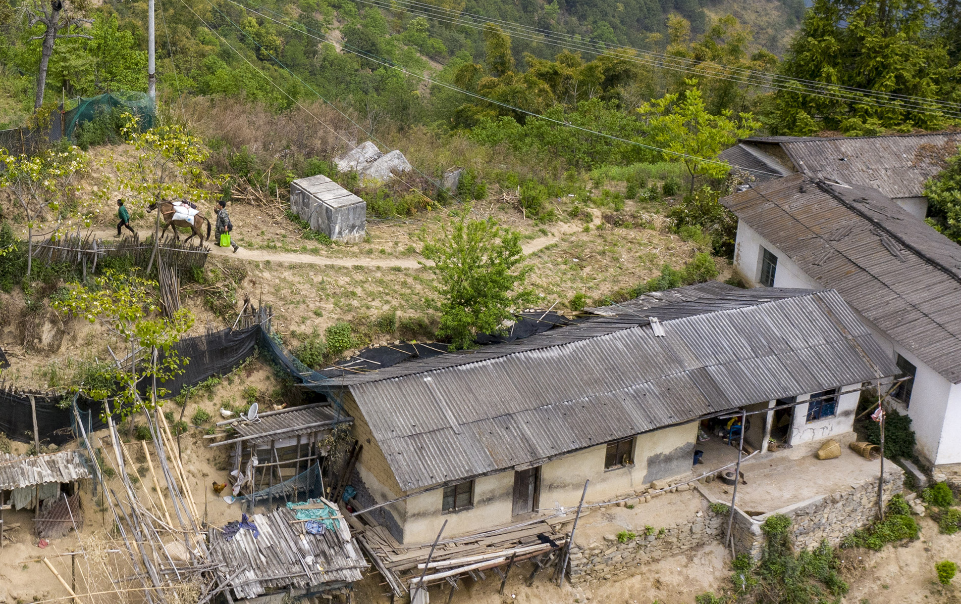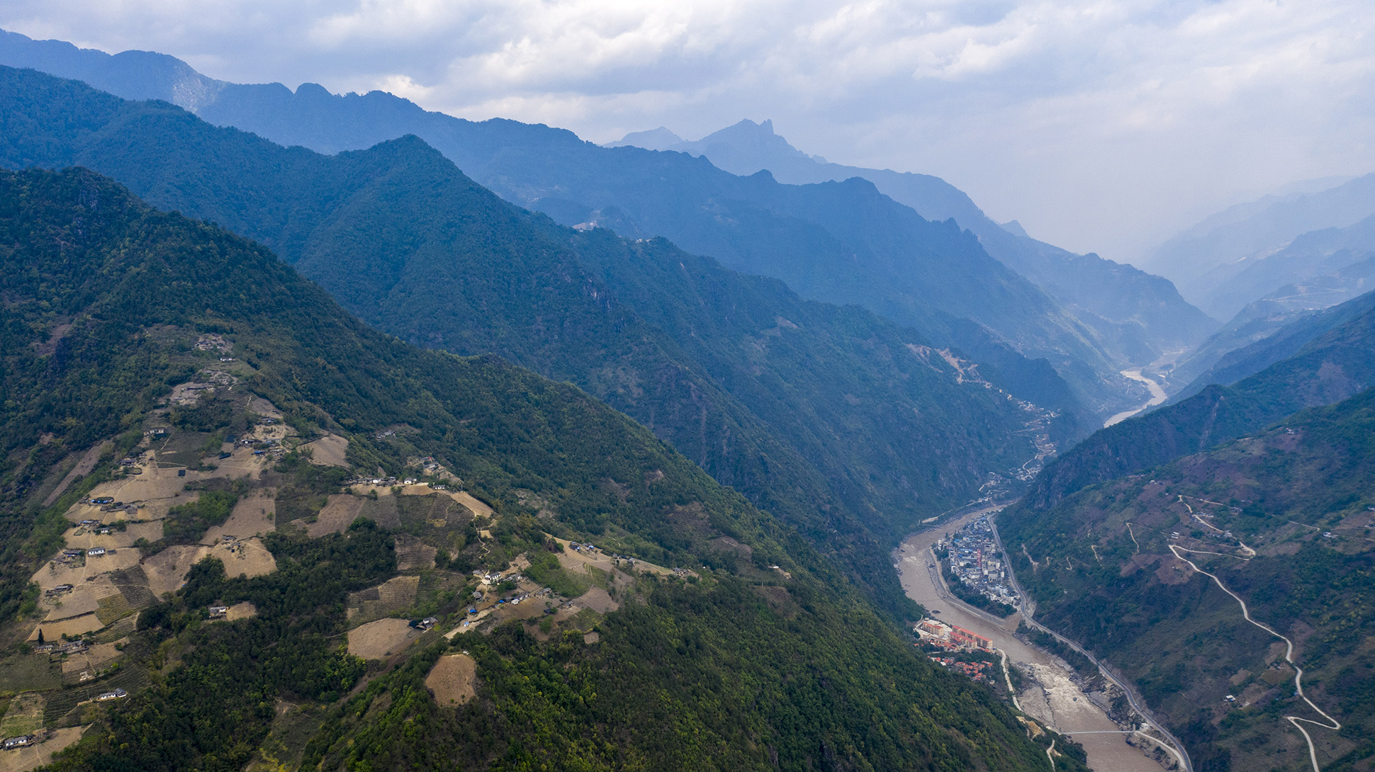 李小波的家搬得不算远,从他家的旧屋往山坡上再走几步就能远远望见江边的新家,我的无人机也能在电量充足的情况下往返两地。但由于怒江峡谷内山势陡峭,新旧两居之间往返步行一趟我们花了五六个小时。
