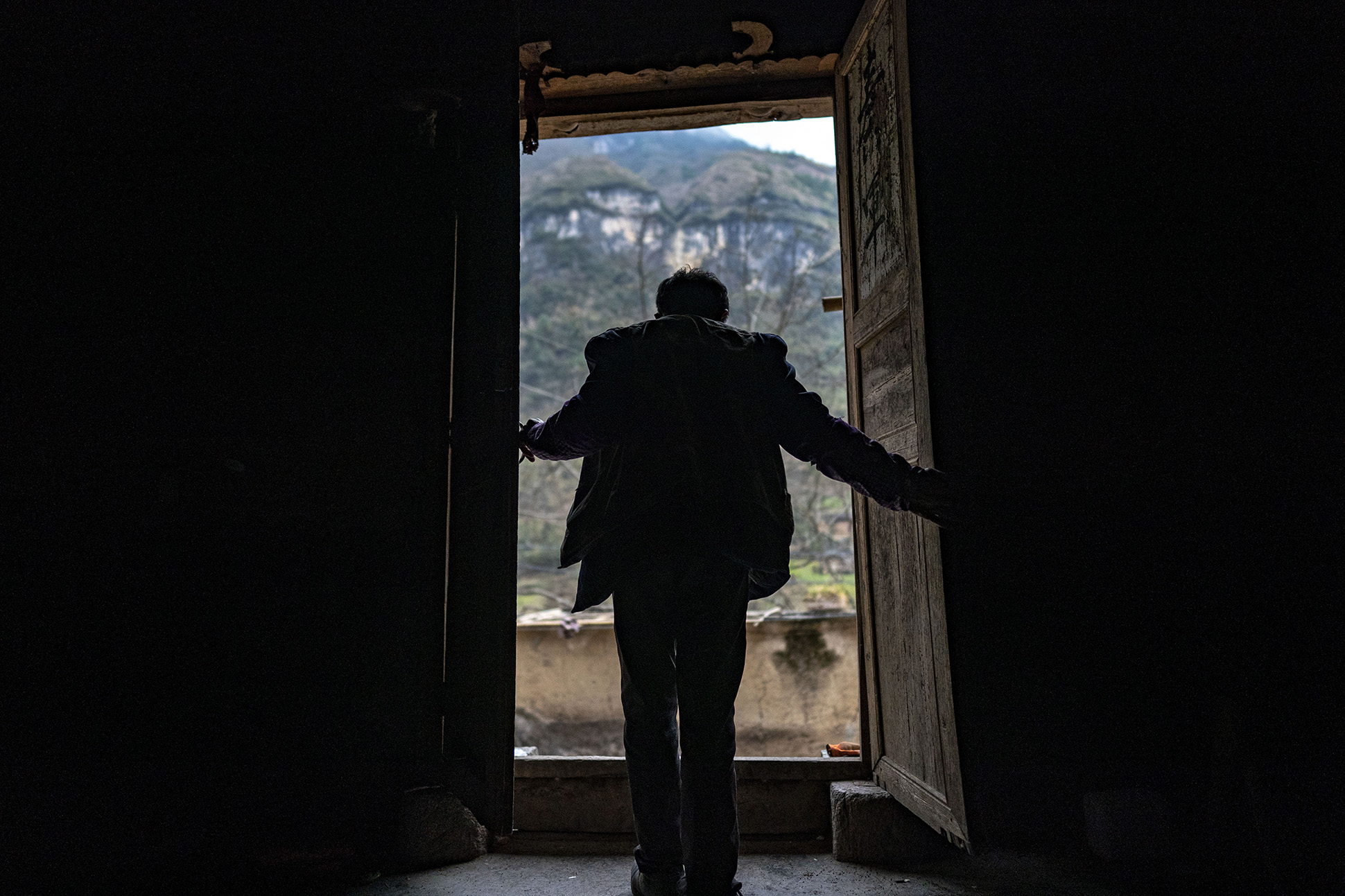 ▲2020年3月14日,王大香的丈夫晏付高关上老屋的大门准备离开。