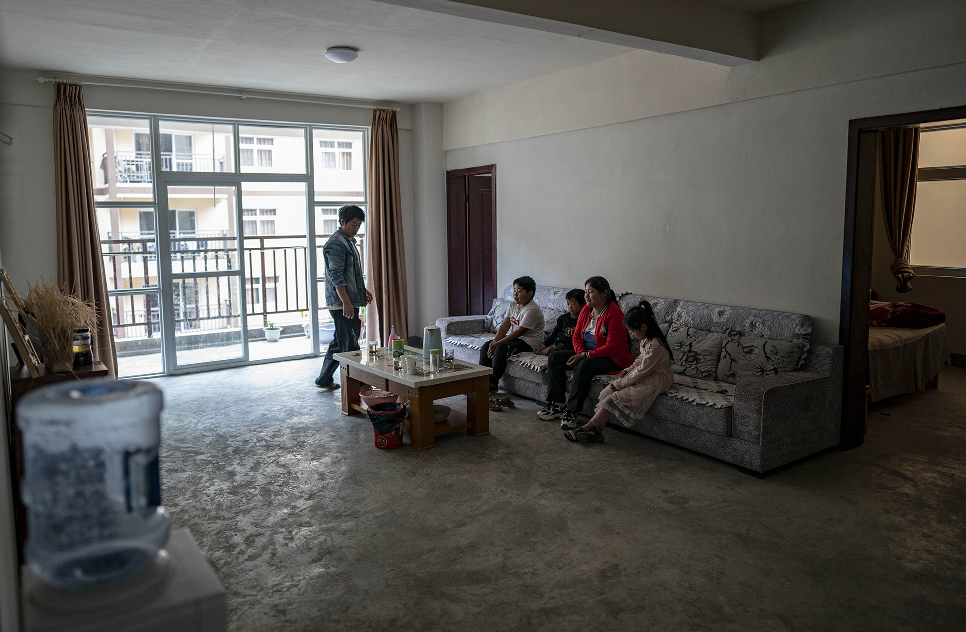 ▲2020年4月15日,李小波一家在托坪村五湖易地扶贫搬迁安置点的家中休息。