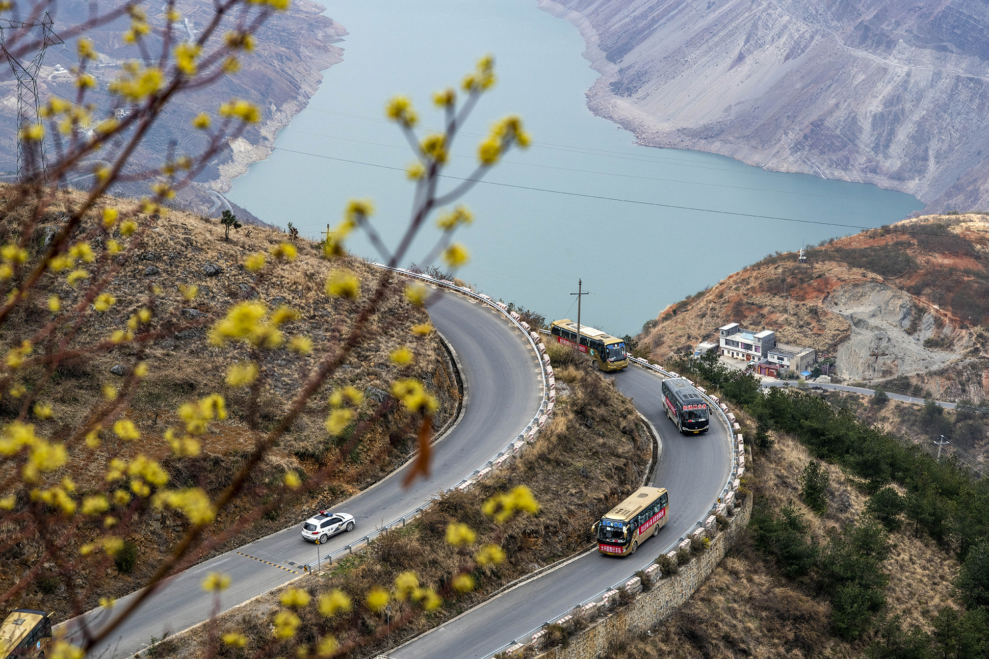 ▲2020年3月15日,搬家的车队在开道警车的引领下从云南省永善县大兴镇开往鲁甸县卯家湾易地扶贫安置区。