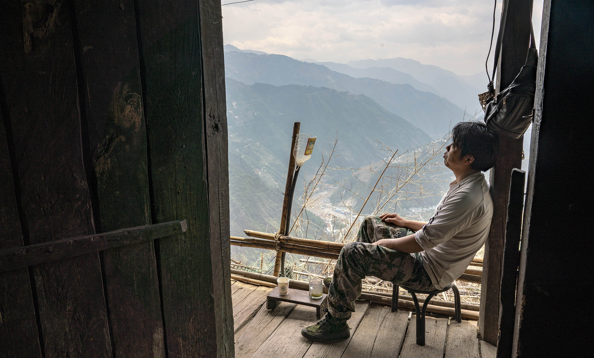 ▲2020年4月16日,李小波在山上的家中休息,门外就能远远望见怒江。
