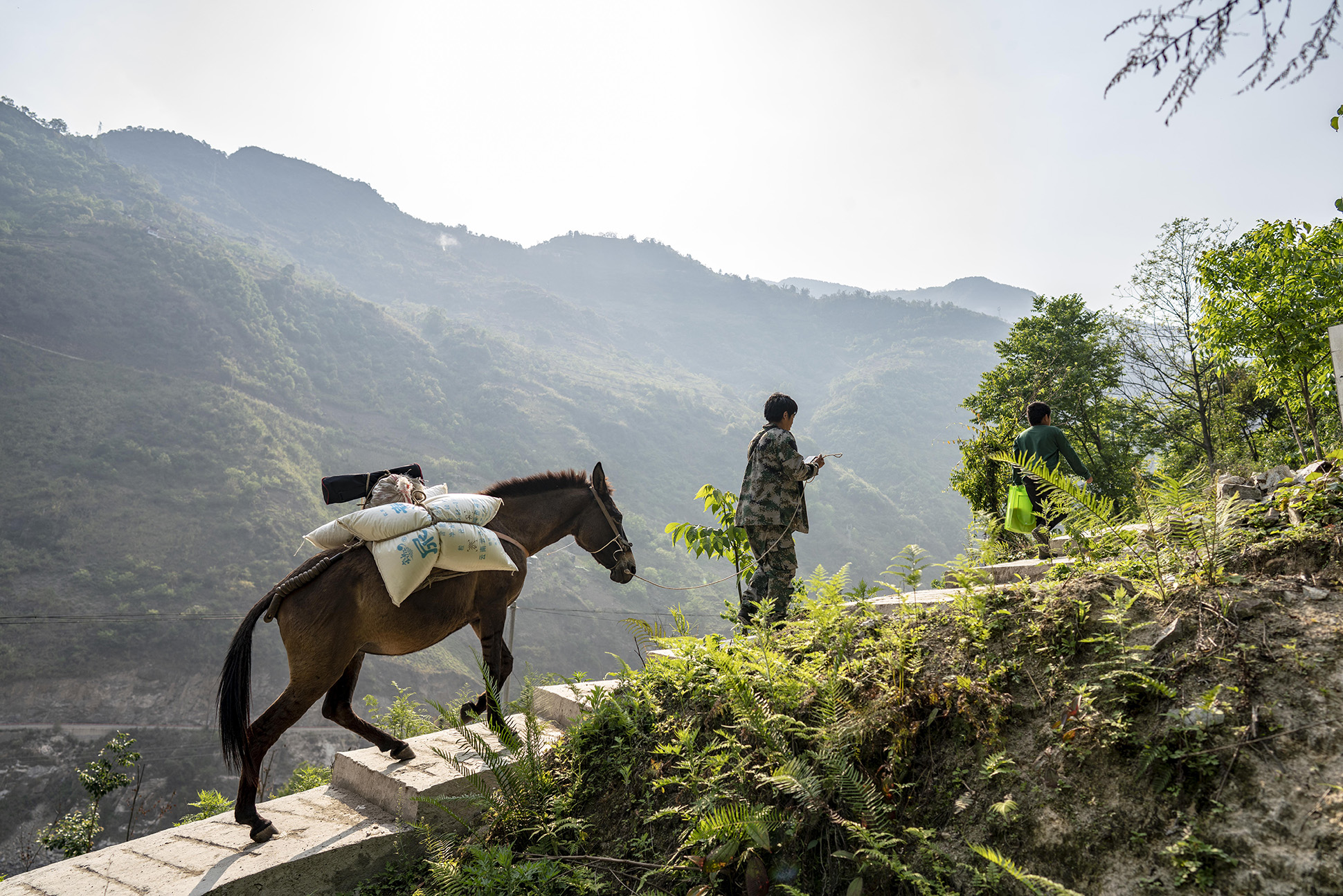 也是在这片大山中,我和同事们遇见了正在搬家的王大香一家。