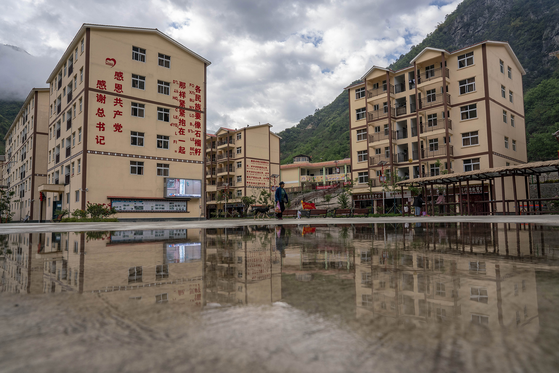 ▲2020年4月16日,从位于山坡上的托坪村旧址远眺江边的托坪村五湖易地扶贫搬迁安置点。