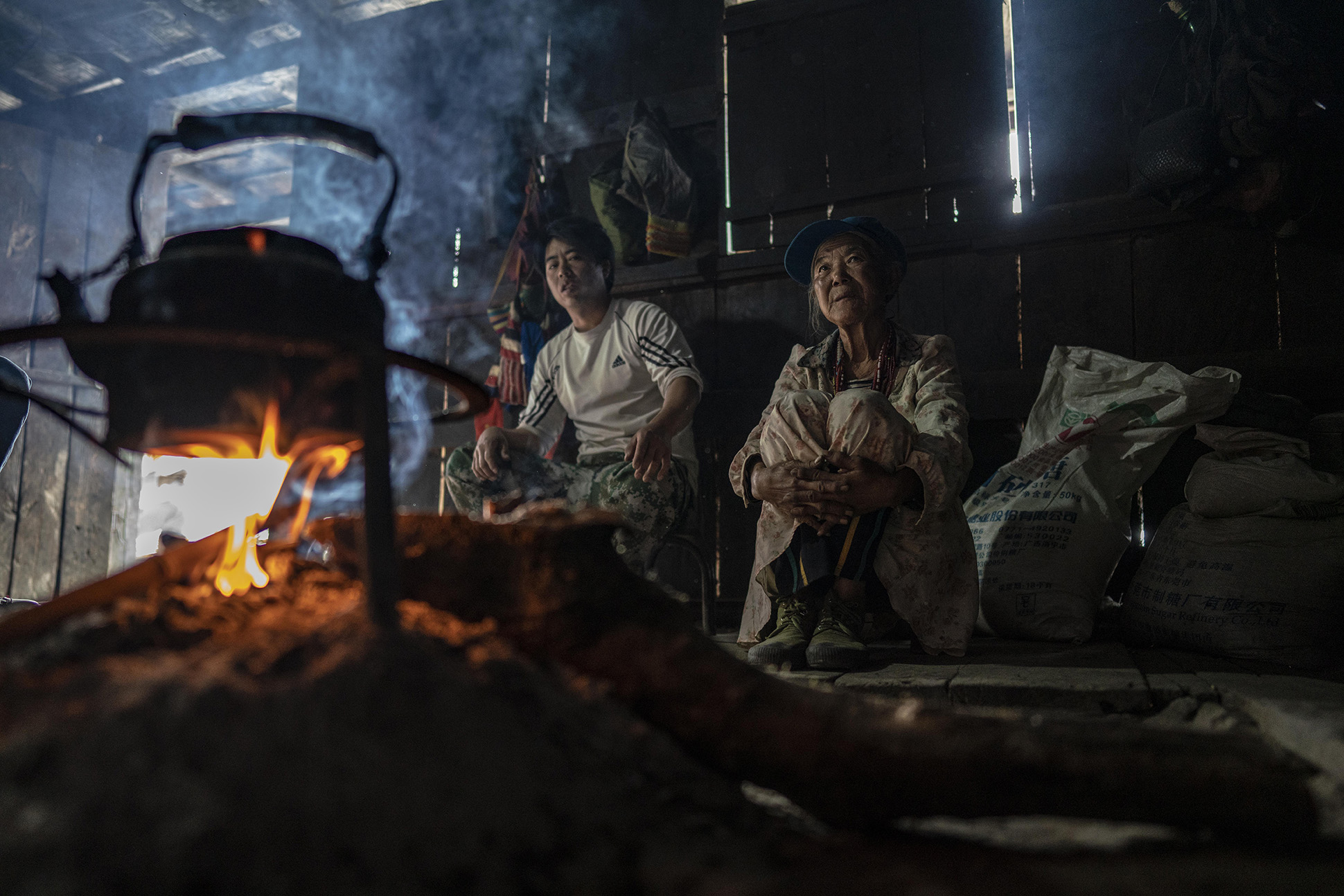 ▲2020年4月16日,李小波(左)在山上的家中劝说母亲跟他一起下山生活。
