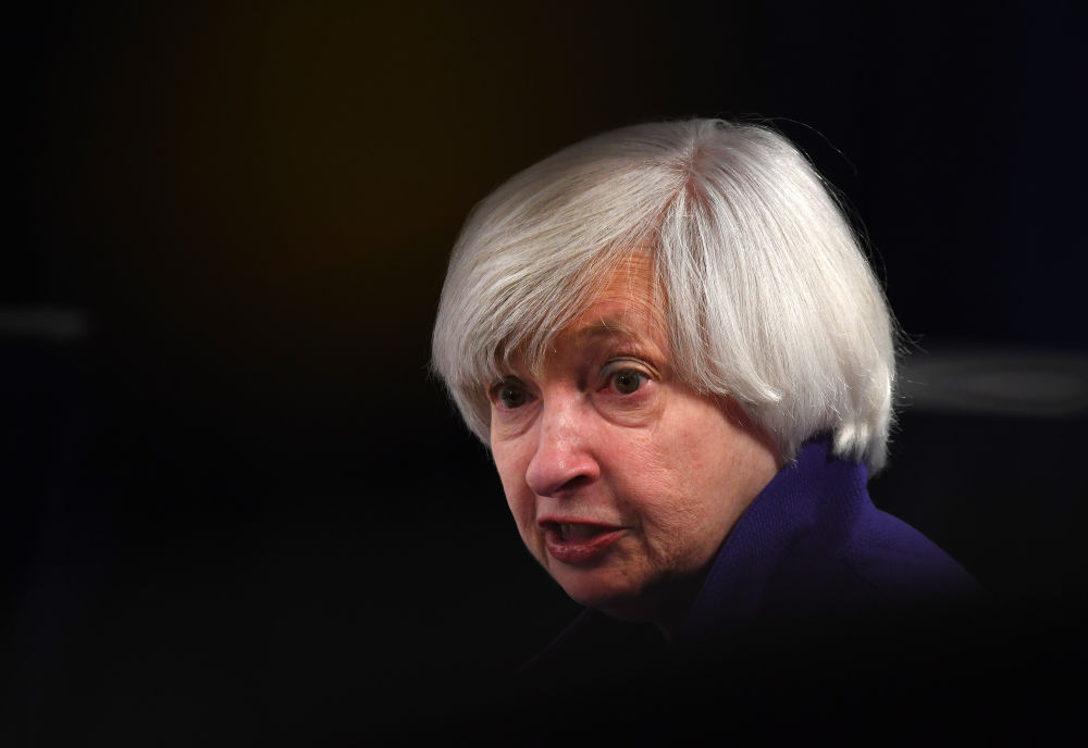 2017年12月13日,时任美国联邦储备委员会主席耶伦在华盛顿举行的新闻发布会上讲话。(新华社记者殷博古摄)
