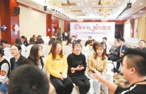 2020年9月30日,湖南省桂东县城三台山休闲酒店娱乐厅,青年男女正在联谊交友。邓仁湘摄(人民视觉)
