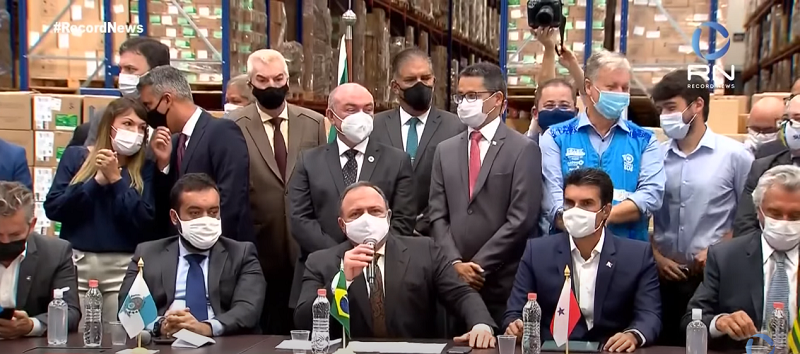 当地时间1月18日上午,巴西卫生部长爱德华多•帕祖洛及数位州长在圣保罗州瓜鲁柳斯市的新冠疫苗存储分发处举行发布会,正式启动向全国分发新冠疫苗的工作。帕祖洛同时宣布,将全国新冠疫苗接种启动时间由1月20日提前至1月18日下午17时。