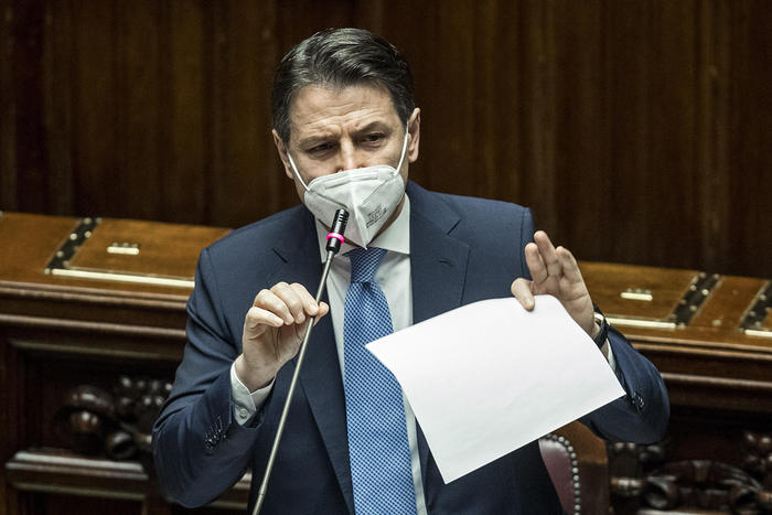 △图为意大利总理孔特在众议院汇报政府危机情况 (图片源自:安莎社)