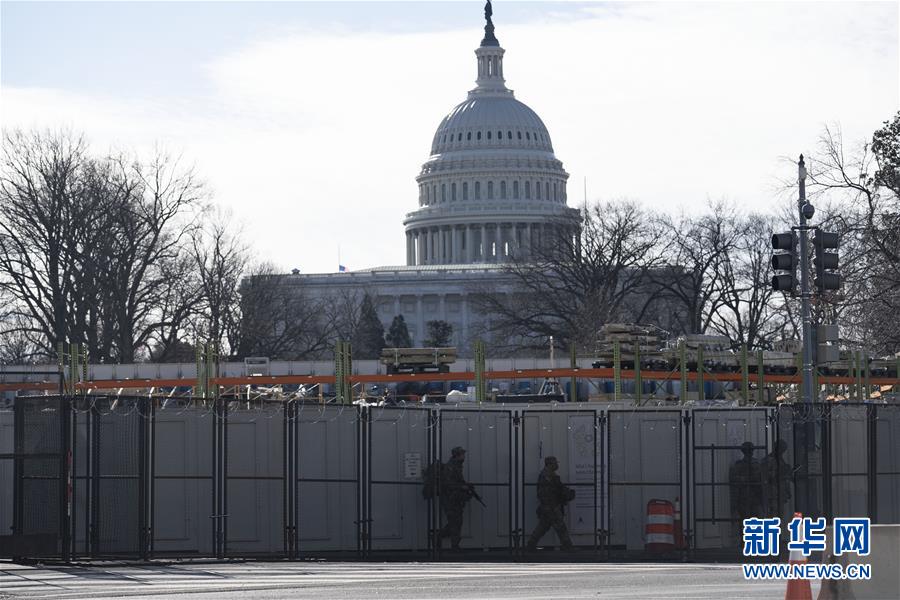 美国当选总统拜登就职典礼定于20日举行。1月6日国会骚乱事件发生后,美国首都华盛顿特区处于高度戒备状态。国会大厦四周竖起高高围栏,市中心多条道路被封锁,五角大楼调派2.5万名国民警卫队队员参与就职典礼安保工作。