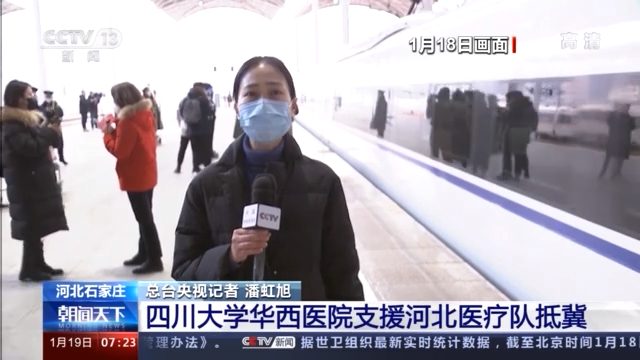 总台央视记者 潘虹旭:我现在是在石家庄站,四川大学华西医院支援河北医疗队乘坐的1282次列车,下午17:16抵达了石家庄。