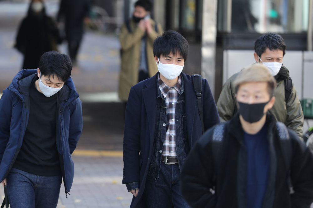 1月7日,在日本东京,人们戴口罩出行。(新华社记者杜潇逸摄)