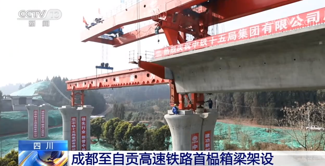 央视网消息:昨天(18日),四川成都至自贡高速铁路首榀箱梁在资阳市黄家沟大桥上成功架设。标志着成自高铁由线下工程施工转入线下线上工程同步施工的阶段,成自高铁建设进入全面提速阶段。